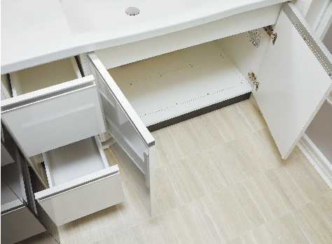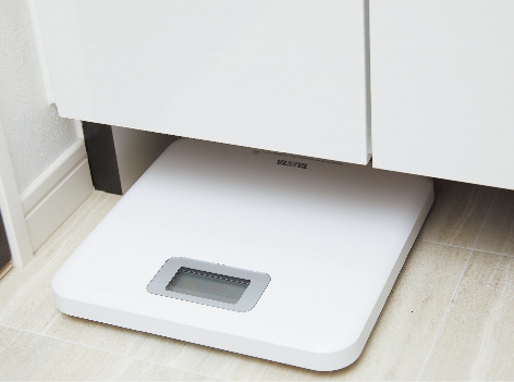 洗面化粧台の下部にヘルスメーターを収納できるスペースを確保しました。