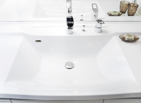 一体成型で継ぎ目がないカウンタートップを採用。お手入れもしやすくスタイリッシュ。
