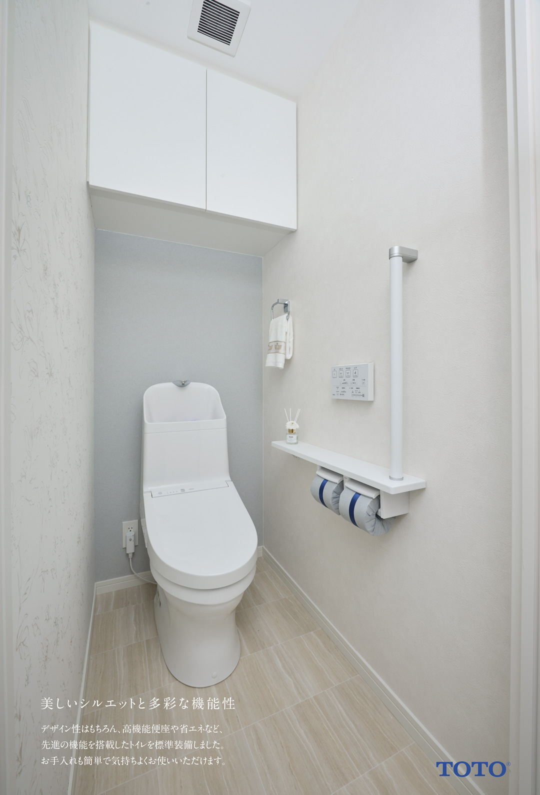 細かな収納に便利な戸棚はトイレスペースをスッキリさせます。