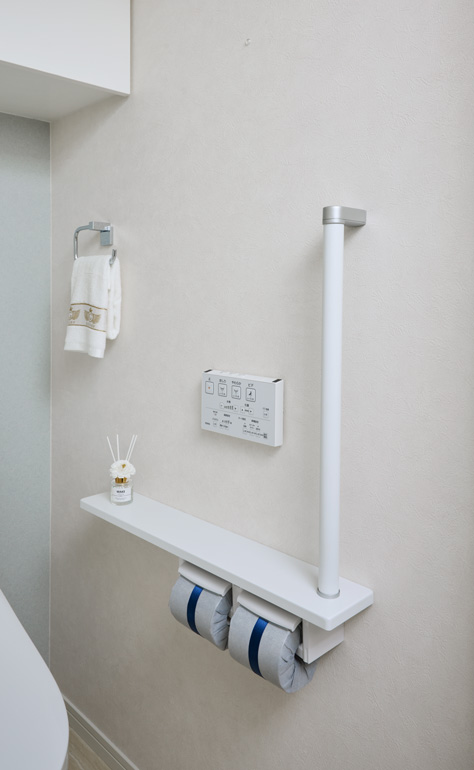 トイレタイムに上品なゆとりを醸し出すカウンターを設置しています。