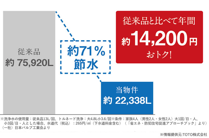 環境に優しく、しかも経済的な超節水トイレ。従来品に比べ約71%の節水を実現しました。