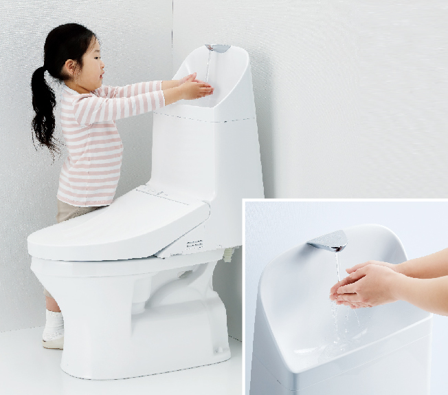 大人から子供まで、しっかり手が洗いやすい高さに設計されています。水はねもしにくく、いつでも気持ちよく手洗いできる仕様です。