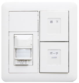 人を感知すると自動的にライトが点灯するオートライトを玄関に設置。(スイッチでオン・オフ・自動が選択可)